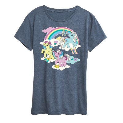 Care Bears - Care Bears Group On Clouds - Women's Short Sleeve Graphic T-Shirt - Share the love and show your caring side with Care Bears graphic apparel, featuring colorful designs inspired by the classic characters from the Kingdom of Caring. With favorites like Cheer Bear, Grumpy Bear, and Tenderheart Bear, each piece brings nostalgic charm, positivity, and heartwarming vibes to your wardrobe. Perfect for fans of all ages who believe in sharing kindness, friendship, and a little bit of magic wherever they go.