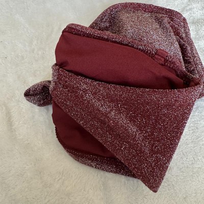 Burnt burgundy bandeau bikini top from Wild Fable™ features an oval ring at the front. Tailored of nylon-spandex blend fabric with metallic fiber for comfortable wear and glam appeal. Back tie and removable straps offer a nice, customizable fit. Removable cups help provide customizable coverage.