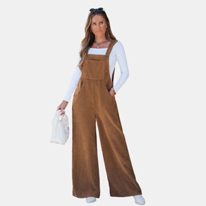 Women's Chic Brown Corduroy Wide-Leg Jumpsuit - Cupshe - 1 of 4