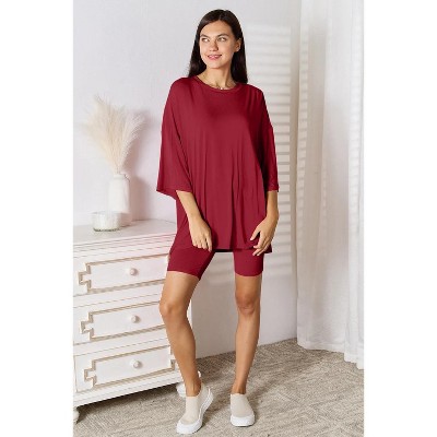 Women's Chic Ribbed Burgundy Pajama Set with Scalloped Details - Cupshe-M-Red