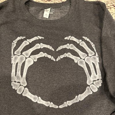 Women's CHIN UP Halloween Skeleton Heart Hands Sweatshirt - 1 of 3