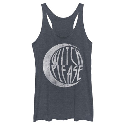 • Jump on your broom this holiday with this flowy tank top that shows off the distressed white text "Witch Please" across the front.