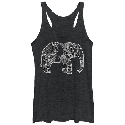 Women's CHIN UP Henna Hamsa Hand Racerback Tank Top - Black Heather - X Large