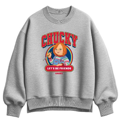 Women's Chucky Bride of Chucky Valentine Relationship Goals Oversized Fleece Crew Sweatshirt - Athletic Heather - X-Large