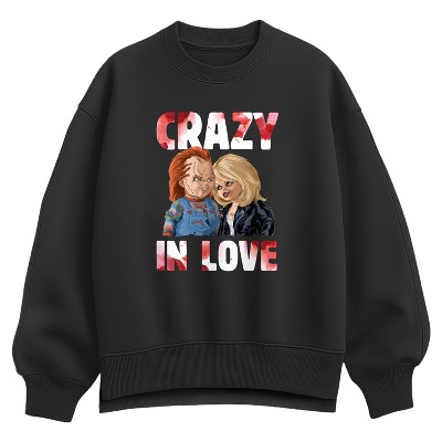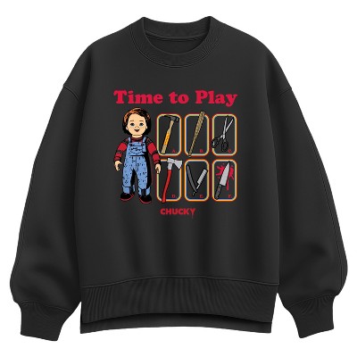 Women's Chucky Chucky Without Coffee Oversized Fleece Crew Sweatshirt - Black - 2 X-Large