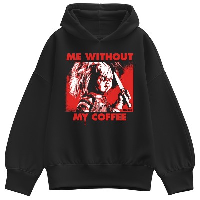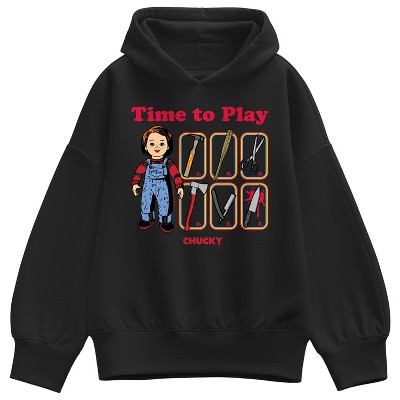 Women's Chucky Crazy In Love Oversized Fleece Hoodie Sweatshirt - Black - Small