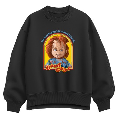 Women's Chucky Hi, I'm A Good Guy Oversized Fleece Crew Sweatshirt - Black - 2 X-Large