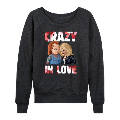 Women's Chucky Lightweight French Terry Wide Neck Long Sleeve Graphic Shirt - Heather Charcoal - Small