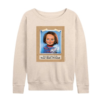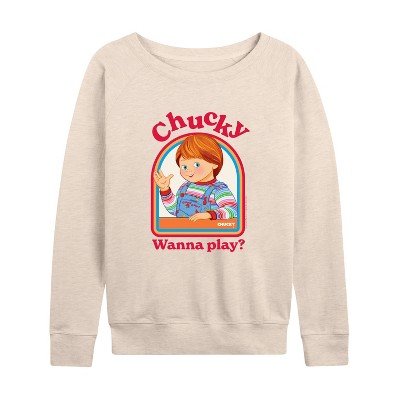 Women's Chucky Lightweight French Terry Wide Neck Long Sleeve Graphic Shirt - Heather Charcoal - Small