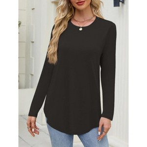 Women's Classic Long Sleeve T-Shirt Soft Round Neck Layering Top Essential Fall/Winter Basic - 1 of 4
