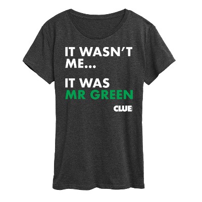 Clue - Clue Logo - Women's Short Sleeve Graphic T-Shirt - Dress to impress—with a little mystery—with Clue graphic apparel, inspired by the classic board game and its unforgettable cast of characters. Featuring bold designs of Miss Scarlet, Colonel Mustard, Professor Plum, and more, each piece brings the suspense, humor, and vintage charm of a good whodunit to your wardrobe. Whether you're a lifelong fan of the game or love a stylish nod to mystery, this collection is perfect for those who appreciate clever clues, dramatic reveals, and timeless intrigue.