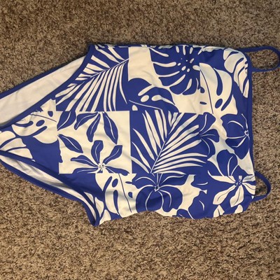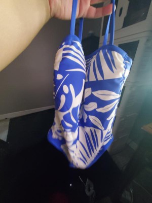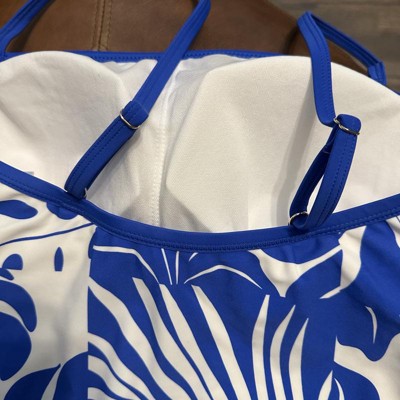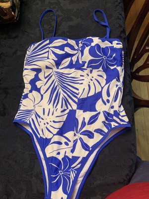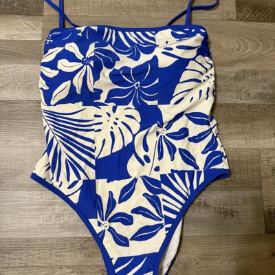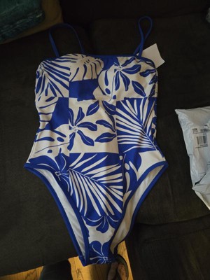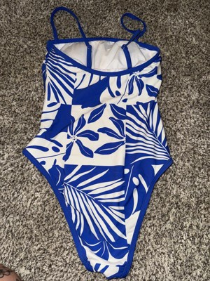 Bright blue and white one piece swimsuit
