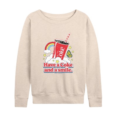 Women's - Coca-Cola - Coke Repeated Distressed Flag Fill Lightweight French Terry Wide Neck Long Sleeve Graphic Shirt - 2 of 4Women's - Coca-Cola - Coke Repeated Distressed Flag Fill Lightweight French Terry Wide Neck Long Sleeve Graphic Shirt - 3 of 4Women's - Coca-Cola - Coke Repeated Distressed Flag Fill Lightweight French Terry Wide Neck Long Sleeve Graphic Shirt - 4 of 4