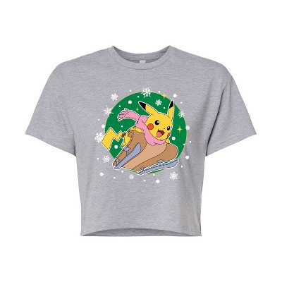 Women's Coca-Cola Happy Holiday Sled Cropped Graphic T-Shirt - Heather Grey - Small