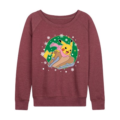 Women's Coca-Cola Happy Holiday Sled Lightweight French Terry Wide Neck Long Sleeve Graphic Shirt - Heather Maroon - Small