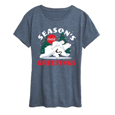 Women's Coca-Cola Holiday Sweater Short Sleeve Graphic T-Shirt - Heather Blue - Large