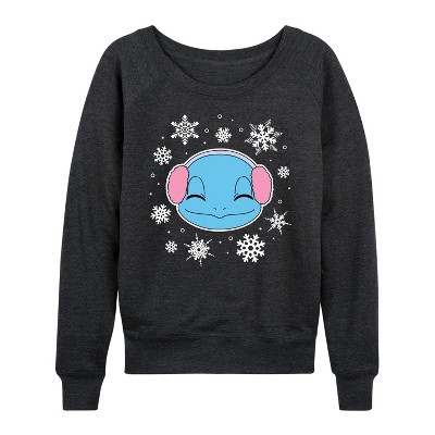 Women's Coca-Cola Polar Bear Circle With Snowflakes Lightweight French Terry Wide Neck Long Sleeve Graphic Shirt - Heather Charcoal - Medium