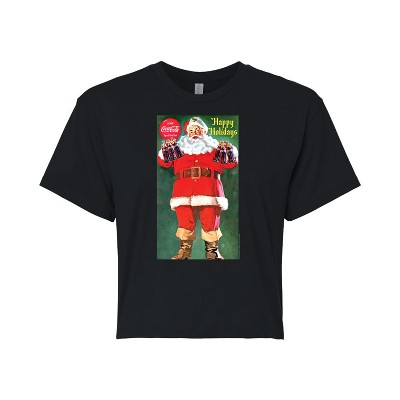 Women's Coca-Cola Polar Bears And Puffin Cropped Graphic T-Shirt - Black - Large