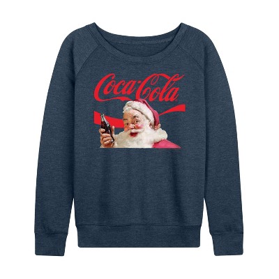 Women's Coca-Cola Sitting Santa Lightweight French Terry Wide Neck Long Sleeve Graphic Shirt - Heather Indigo - 4X