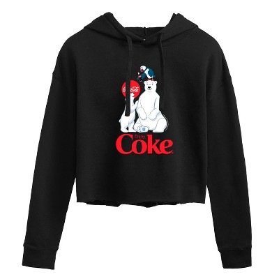 Women's Coca-Cola Vintage Santa With Dog Cropped Graphic Hoodie - Black - Large