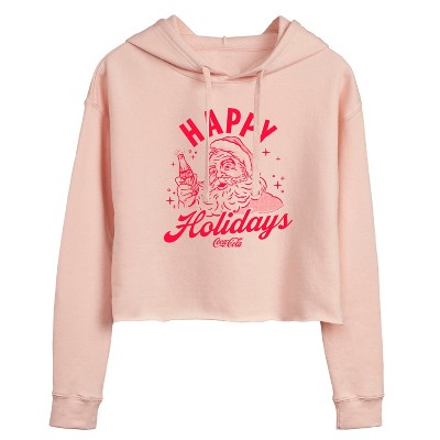 Women's Coca-Cola Vintage Santa With Presents Cropped Graphic Hoodie - Blush - Medium
