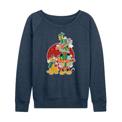 Women's Coca-Cola Vintage Santa With Presents Lightweight French Terry Wide Neck Long Sleeve Graphic Shirt - Heather Indigo - Large