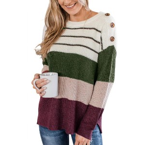 Women's Colorblock Stripe Buttoned Sweater - Pretty Bash