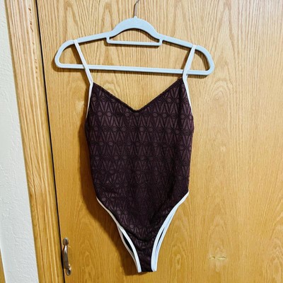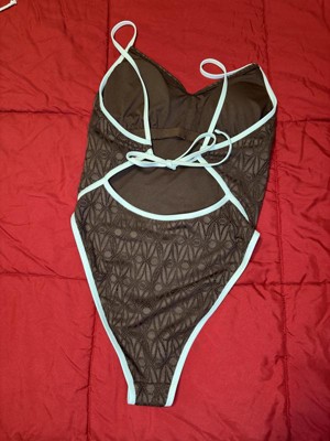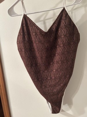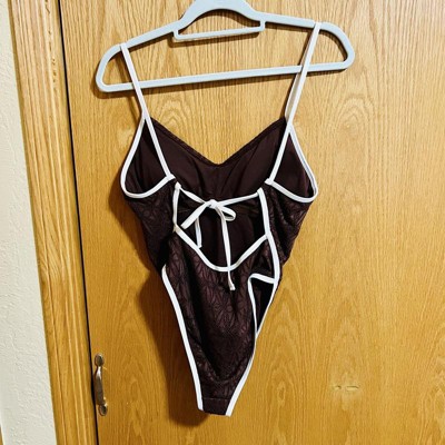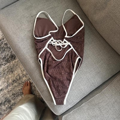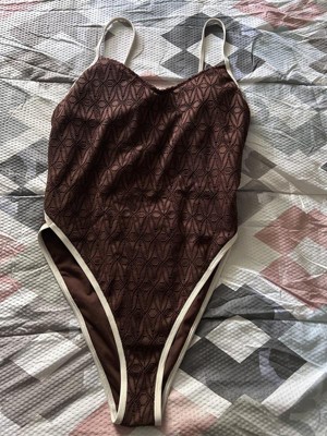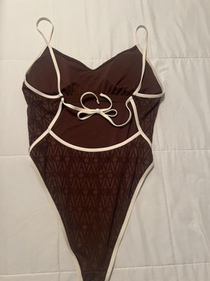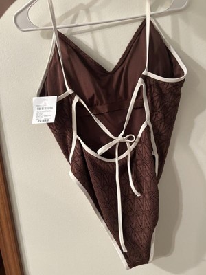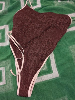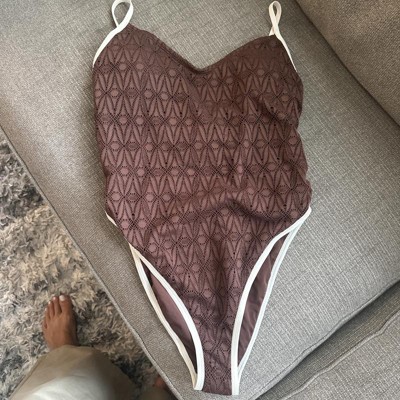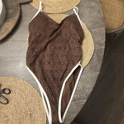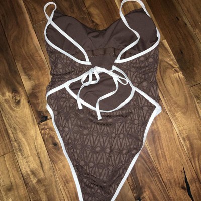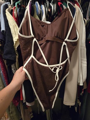 Women's Contrast Binding Crochet Extra High Leg Extra Cheeky One Piece Swimsuit - Wild Fable™ Brown XXS