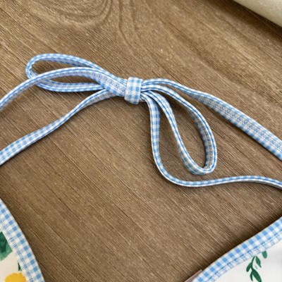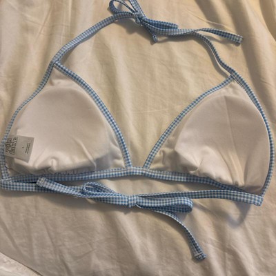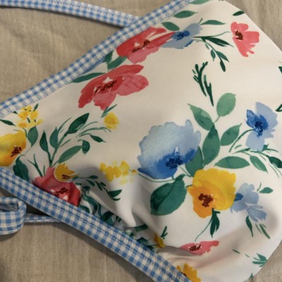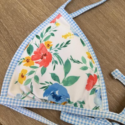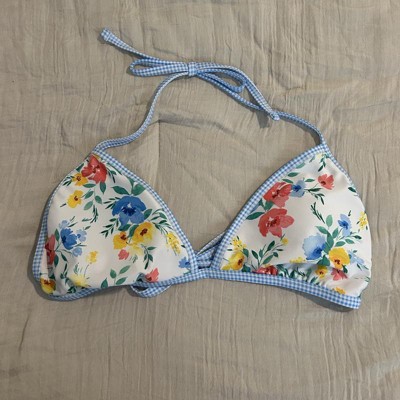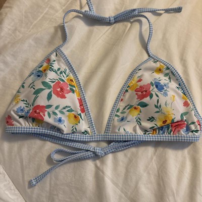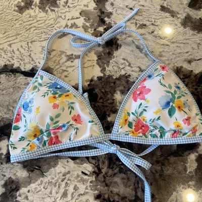 [This review was collected as part of a promotion.] This bikini top from Wild Fable is so pretty. The colors are vibrant and the floral pattern is gorgeous. I love the light blue gingham trim, it feels like a picnic. I ordered a size Small, I’m usually a small or 34B and this fit perfectly. The back and neck have functional ties, but the triangles do not adjust closer or further away. The quality of the suit is really nice and thick I received an incentive to write this review.