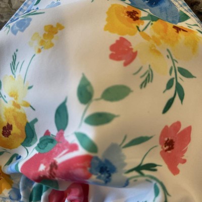 [This review was collected as part of a promotion.] I’m 5’8 and 150lbs. I normally wear a size 10 and purchased this swim top in a size large. It fits true to size. I love the gingham print on this with the flowers. It’s on trend this season and very cute. It seems well constructed and of good quality. The pads on the inside are removable which is not my favorite. The top doesn’t provide any support which is definitely something to consider. I received an incentive to write this review.