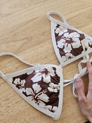 Women's Contrast Binding Medium Coverage Triangle Bikini Top - Wild Fable™ Brown/White Floral Print