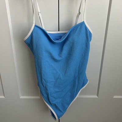 Medium-coverage one-piece swimsuit from Wild Fable™ with pucker texture. Made from nylon tricot fabric with spandex and recycled polyester lining. Designed in solid color with contrast-color binding. Removable cups offer customizable coverage. Adjustable straps make it easy to find the perfect fit.