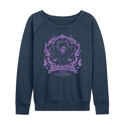 Women's Corpse Bride Scraps Lightweight French Terry Wide Neck Long Sleeve Graphic Shirt - Heather Indigo - 2X