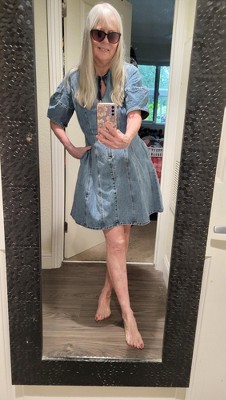 I’m a lover for denim dresses and this is one of my favorites. I got compliments on it all day. It shows off your waistline and flares out at the hips. The sleeves are super cute. You can wear it zipped all the way up for modesty or unzipped to show a little cleavage. The pockets are great and functional! Definitely a dress that can be worn in various ways. I tried on a medium and small. Medium is my normal size and what I went with. The small worked, but too tight in the chest when zipped. I’m self conscious about lose skin in the belly area. This dress hit at the right places and hid the rest. Just buy the dress!