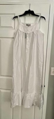 This soft 100 percent cotton poplin nightgown for women from Alexander Del Rossa is comfortable, durable, and classy. Made from a premium 100% cotton fabric, this women's vintage looking nightgown is breathable and easy on the skin. Designed with you in mind, this victorian nightgown is perfect for lounging around the house - even when guests are present. Narrow cotton lace trimmed shoulder straps. Gathered front with long narrow placket with 8 pearl shell buttons. Back is also gathered flowing into a slight A-line. Gown features wide ruffles; hem trimmed with cotton lace. Vintage elegance.