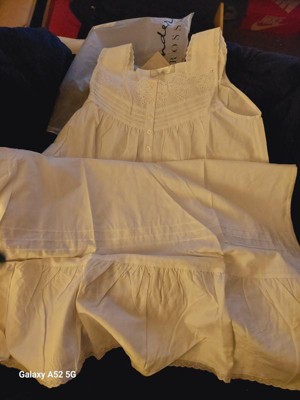 [This review was collected as part of a promotion.] This Victorian gown by Alexander del Rossa is so pretty. It’s 100% cotton, soft and comfortable. It fits long on me, 5’1. It’s light and breezy in this Texas heat. My husbands likes it too.