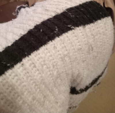 This is such a cute sweater and the fabric is soft and cozy. However, it pills immediately and A LOT. I wore it for about three hours while sitting in the theater (so not a lot of moving) and two times briefly after that and it already looks ratty and pilled. Because of its condition it is already relegated to comfy clothes I only wear around the house. This sweater cost way too much for the quality.