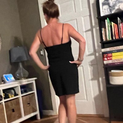 [This review was collected as part of a promotion.] This black slip dress was something I was hopeful about but it did disappoint a bit. I should’ve sized up as there’s not much stretch or give to this fabric. The top section sits weird. The straps are adjustable which is nice. There is a side zipper but it doesn’t completely detach. I like the length of the dress- hitting above the knee. It’s a simple little black dress but leaves much to be desired. I’m 5ft 3 inches and usually wear btw small and medium. I received an incentive to write this review.