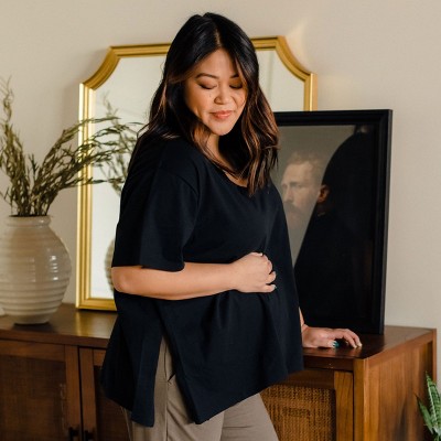 Meet your new maternity & postpartum staple: the Cross Over Short Sleeve Nursing Tee! Crafted from soft and stretchy rib-knit fabric, it’s relaxed fit helps keep you remain comfortable throughout pregnancy and beyond. Perfect for lounging or layering, it’s the essential piece that supports you from bump to baby and beyond.