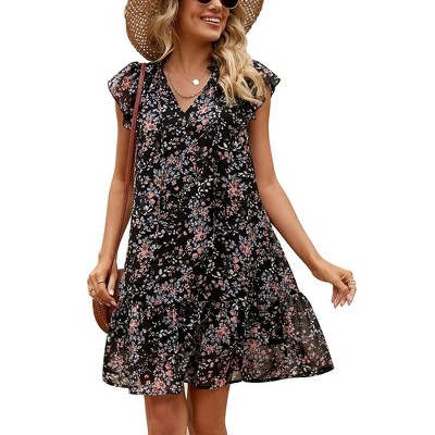 Features:Crew neck,short flounce sleeve,mini dress,easy to dress up and dress down.Great birthday christmas thanksgiving gift idea for women.Perfect to Wear in all Seasons.