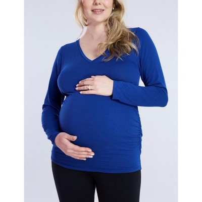 Women's Crewneck Long Sleeve Draped Nursing Maternity Tee - Peacoat - Size: Small - Motherhood Maternity