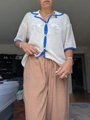 Women's Crochet Button-Down Swim Cover Up Shirt - Shade & Shore™ Cream/Blue
