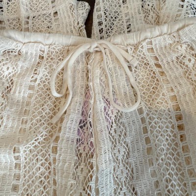The detail on these beautiful crochet pants is amazing. They are the perfect for over any swimsuit or summer beachwear. Very comfortable, easy to get on and off. They tie at the waist and even have a pocket.