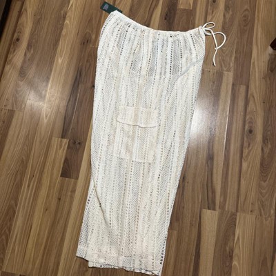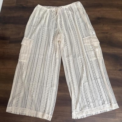 Women's Crochet Mid-Rise Swim Cover Up Cargo Pants - Wild Fable™ Beige X