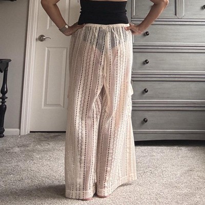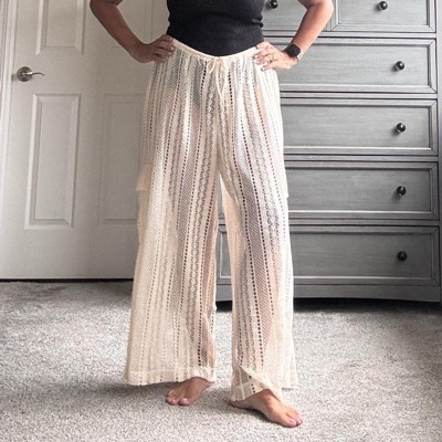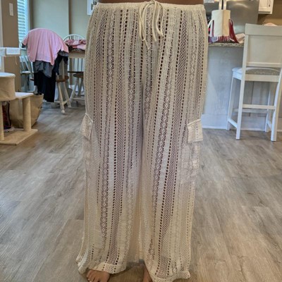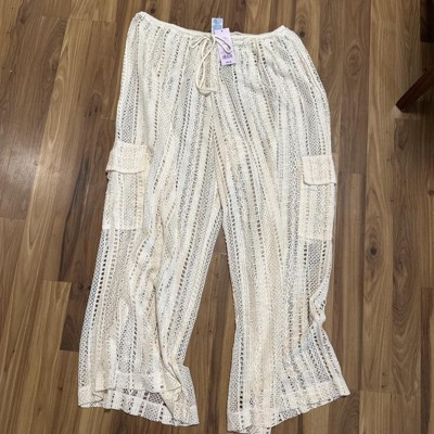 Beige crocheted, swimsuit, cover-up pants