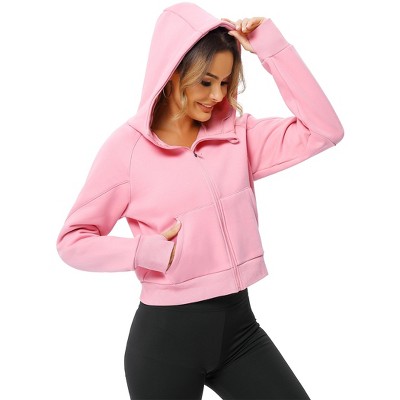 Women's Cropped Hooded Top Casual Zip Front Long Sleeve Sweatshirt with Pockets Orange XXL