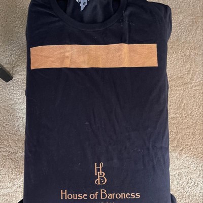 I was sent a shirt with a defective logo. The House of Baroness logo was on the stomach area and a large gold band was across the chest, nothing like the picture shown. Tag was cut inside shirt. Not sure how someone didn’t notice it. ?