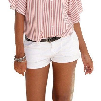 These versatile denim shorts are a wardrobe staple, pairing effortlessly with a variety of tops. Featuring a 7-inch inside leg length, they can be worn long or rolled up for a more casual look. Crafted from a blend of 98% cotton and 2% elastane, they offer both comfort and a touch of stretch. Please note that a belt is not included. The shorts are easy to care for: simply machine wash cold with like colors (inside out), and hang to dry or lay flat to maintain their shape. Imported.