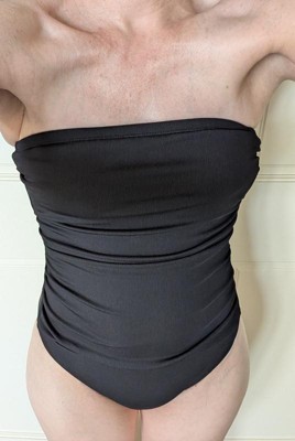 I love this suit. It’s easily the most flattering suit I have. It does a great job holding in the tummy! The runching is great, and looks great. There’s a seam on the lower tummy area that keeps the runching where it needs to be. The ribbed fabric and lining are thicker, so it hides imperfections. There’s some boning at the sides of the top for support. I like that the straps are removable. This suit is definitely on the tight side, that’s part of how it works, but I did need help from someone else to give the back a solid yank upwards to get the suit in place. Overall, it looks great, has great coverage, but is not my most comfortable suit.