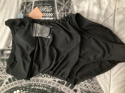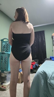 This just looks really bad on me. If there's ever been a way to drive home just how frumpy my body has gotten over the years, it was pouring on this black drab one-piece. All my flab drooped over all the edges and it barely covered my rear end. I would never wear this out in public. It's basically just a way to show me how bad I look now. I would not purchase this nor would I recommend it to other women, no matter their size, because this color and style just looks so doldrum on any body shape.